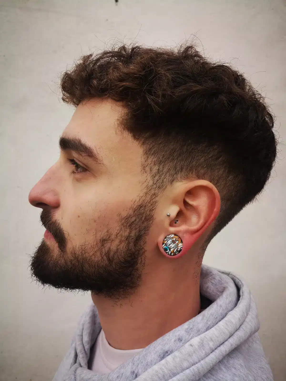 Icy Blue, Gold Trimmed Ear Stretcher in the colours of your choice.