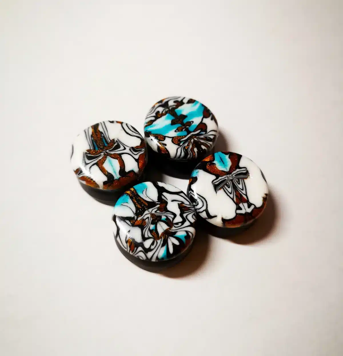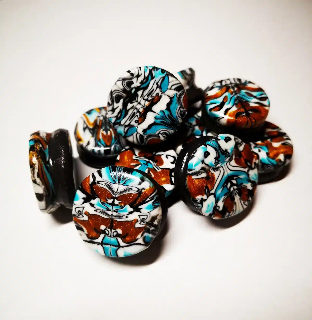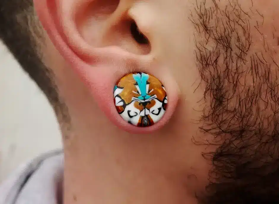 With an eye catching geometric pattern and shimmering gold trim, these ear stretchers are sure to turn heads