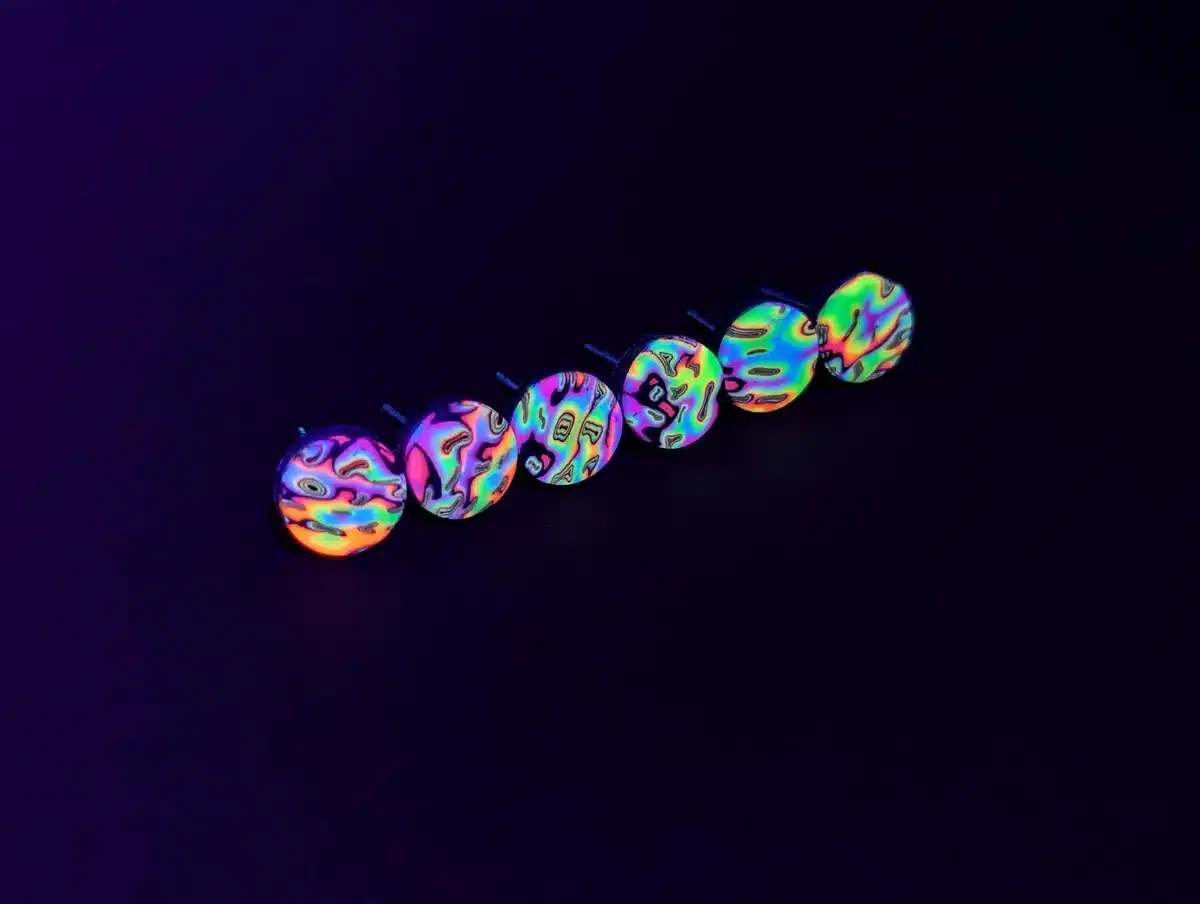 UV Reactivity: These neon ear studs are not just visually striking but also fluoresce brilliantly under UV light, making them perfect for nightime events.