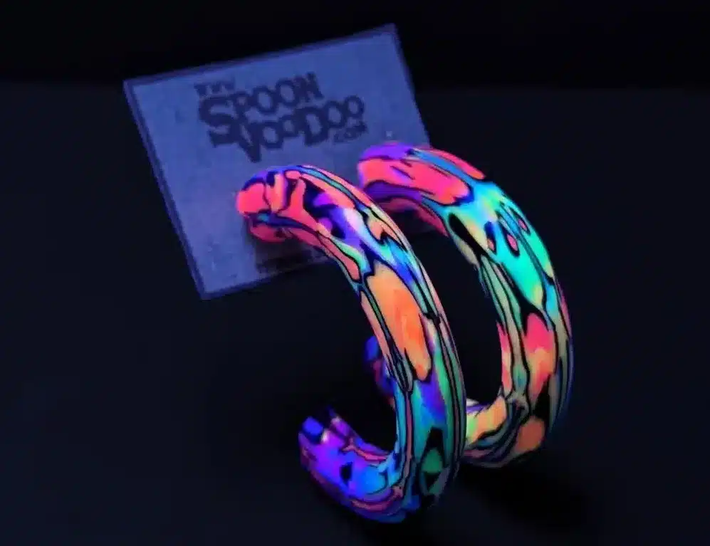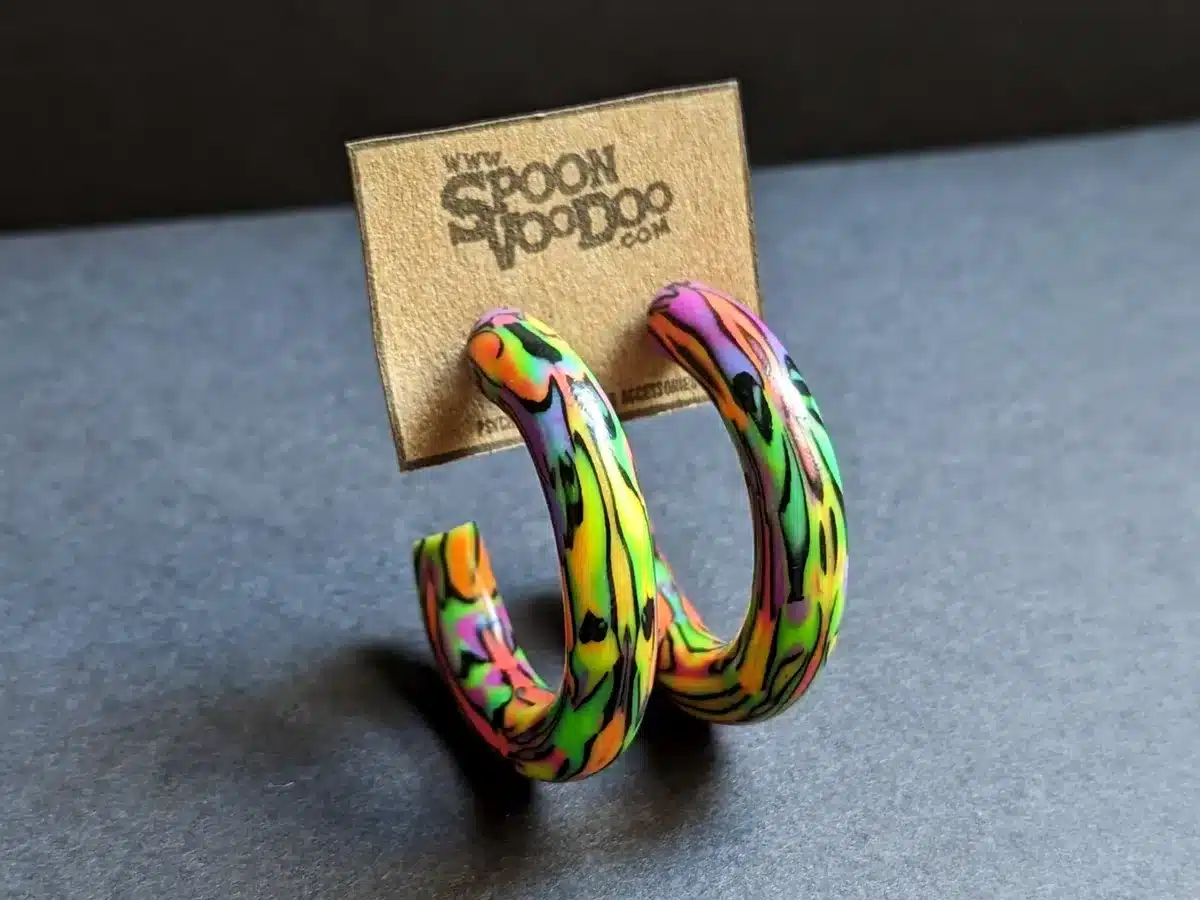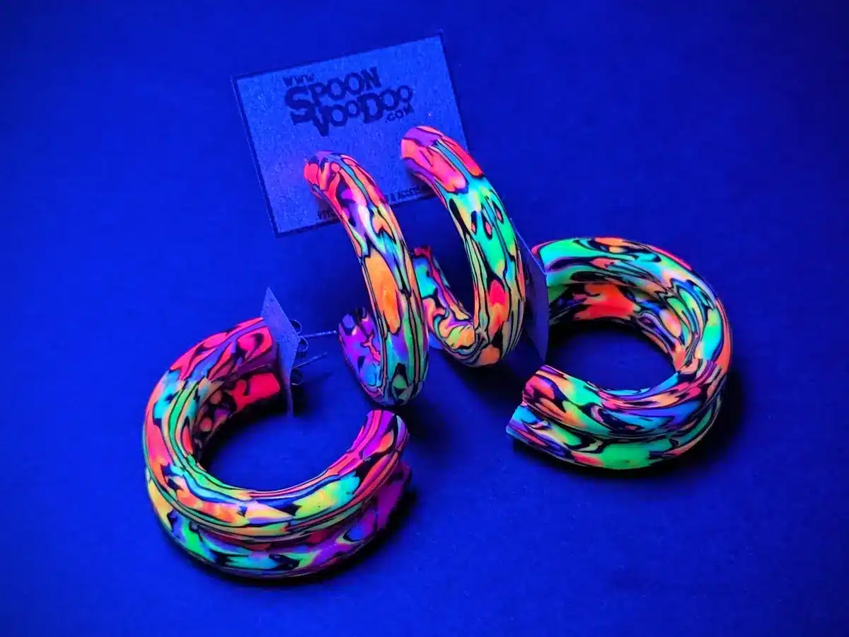 Made with a stainless steel flat pad backing and a blacklight refective material, they’re perfect for the EDM enthusiast. Not only are they trendy and affordable, but they are also lightweight, durable and varnished for a long-lasting finish. 4cm hoop size (measured around the outside)