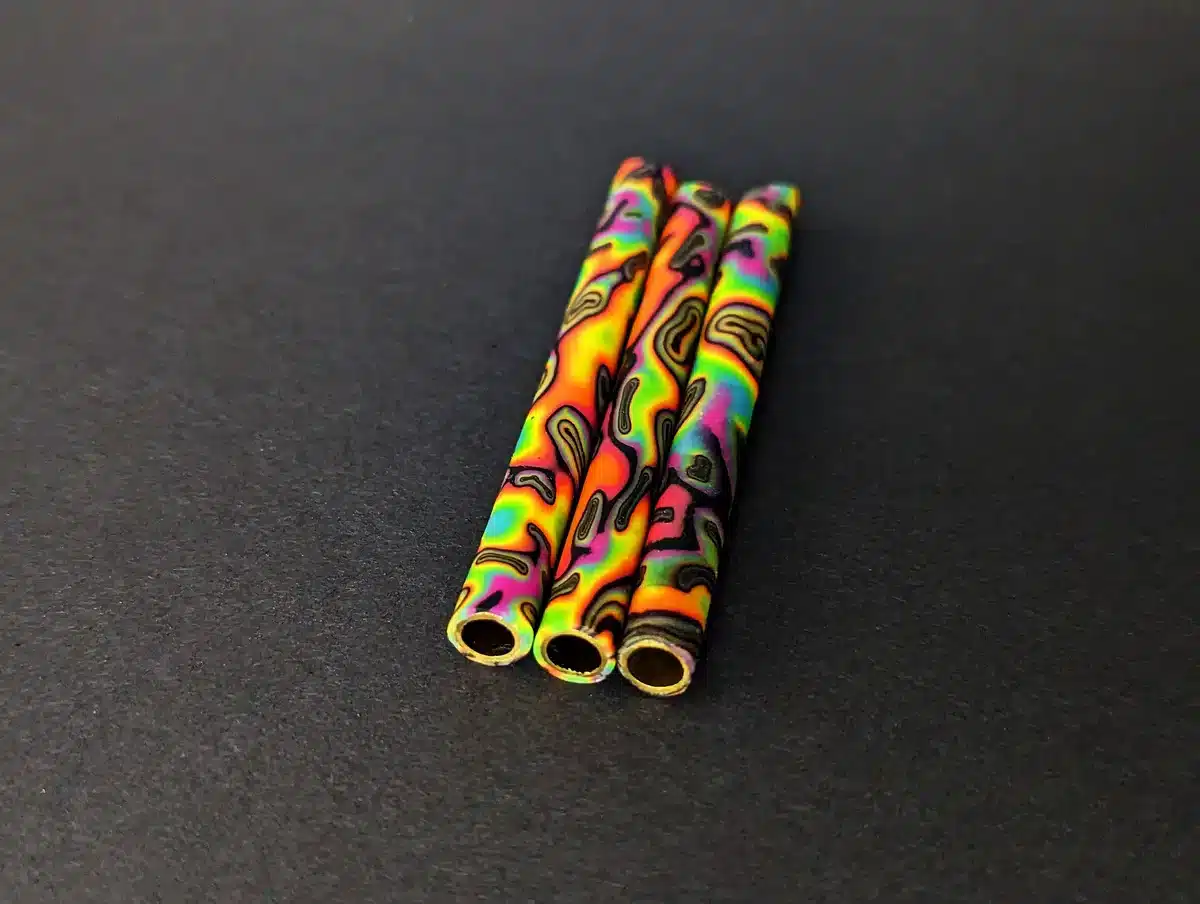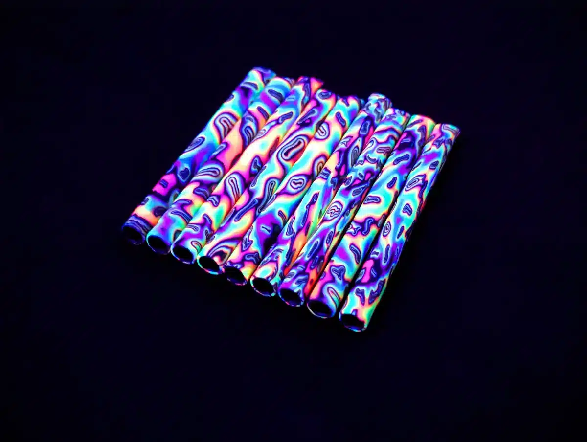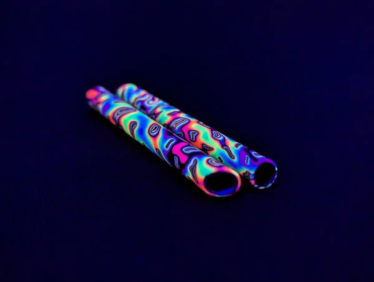 UV Travel Straw, Made with durable brass inner tube, wrapped with a Neon Psychedelic Rainbow Pattern.