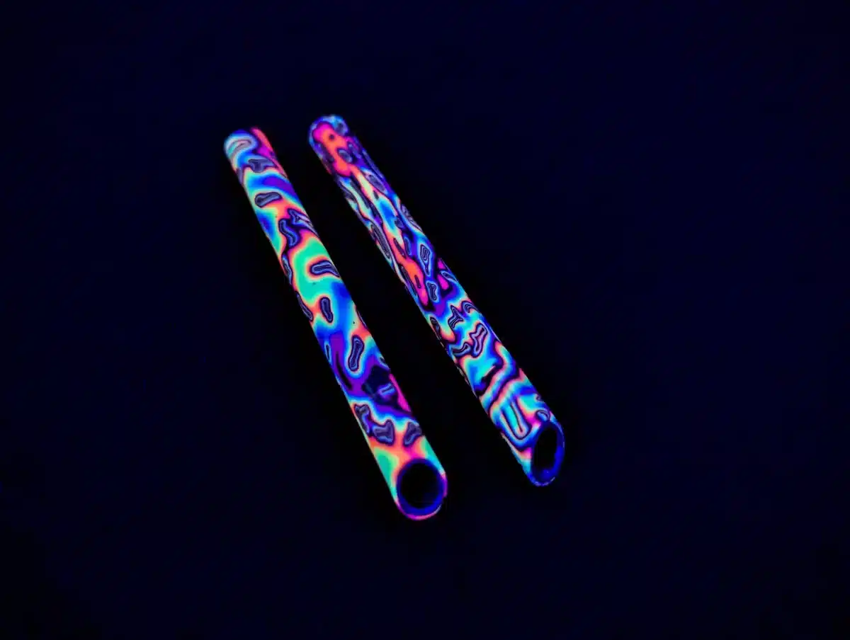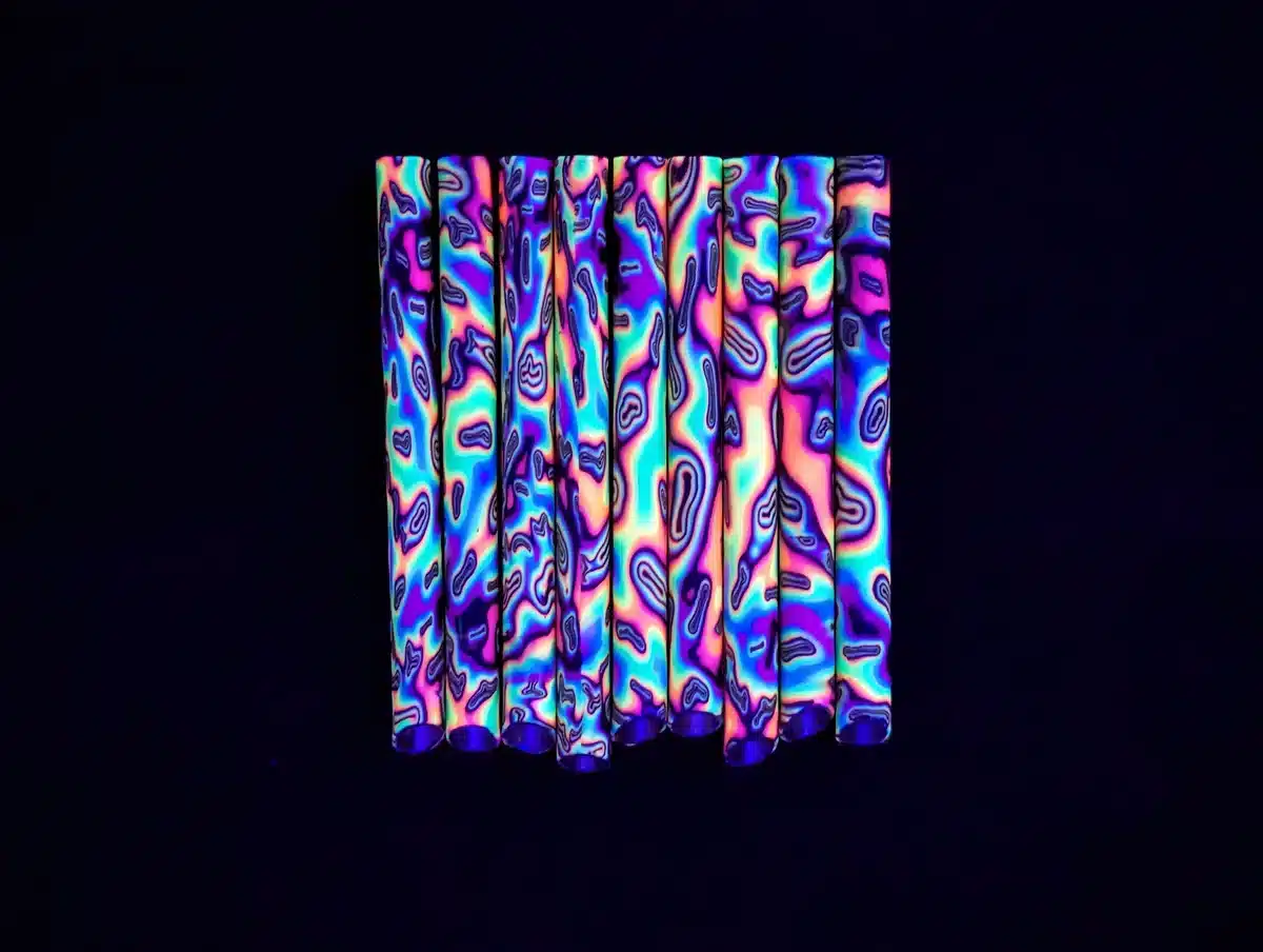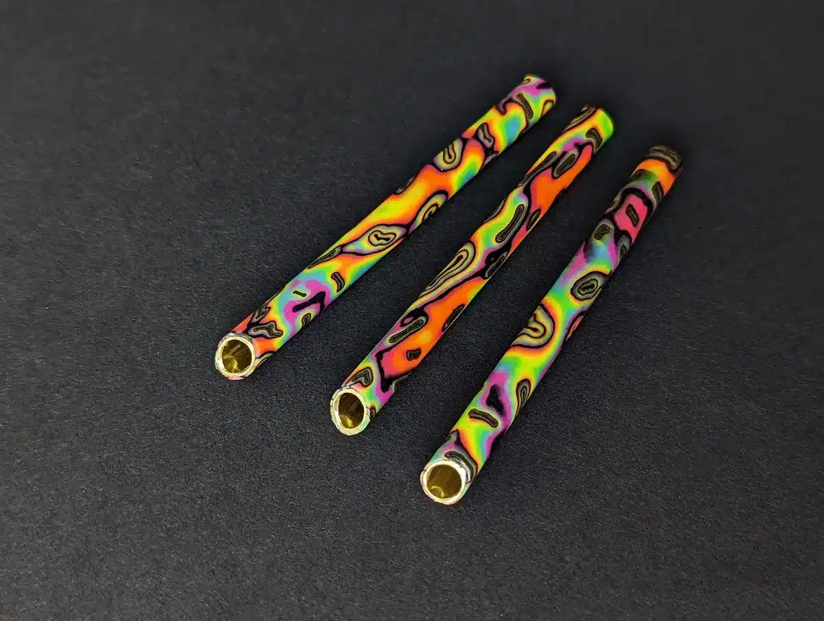 UV Travel Straw, Made with durable brass inner tube, wrapped with a Neon Psychedelic Rainbow Pattern.